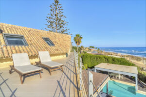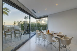 Esta villa no solo presume de su ubicación en primera línea, sino también de su proximidad a los mejores chiringuitos, clubes de playa y restaurantes de Marbella Este, además de contar con privacidad y fácil acceso a todos los servicios.
