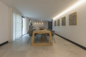 La villa ofrece una zona exterior excepcional, con una pista de tenis y un amplio jardín. Además, un aseo y un vestuario, ideales para disfrutar del estilo de vida al aire libre. Junto a la impresionante piscina de 14 metros de largo y 2,5 metros de profundidad, hay un elegante comedor al aire libre, perfecto para reuniones y entretenimiento.