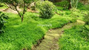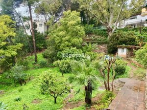 El jardín natural y maduro con arboles frutales y proyecto para construir una piscina, dos zonas de parking que pueden cubrir con una pergola.