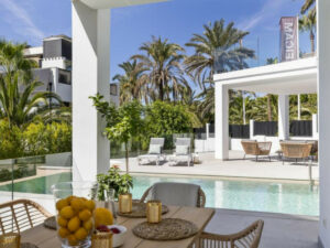 Cuenta con una atractiva piscina privada y se encuentra a un corto paseo de la playa, a tan solo 5 minutos en coche del centro de Marbella y próxima a todo tipo de servicios.