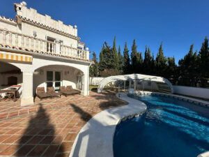 Esta elegante villa independiente se encuentra en la exclusiva zona de Marbesa, ubicada en Marbella Este. Es una propiedad ideal para quienes buscan un entorno residencial tranquilo junto al mar, combinando privacidad y cercanía tanto a la playa como a los principales servicios y comodidades de la zona. La vivienda dispone de una generosa superficie construida de 400m² y se asienta sobre una amplia parcela de 1.230m².