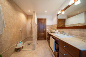 Alberga cuatro dormitorios. Uno de ellos se utiliza actualmente como estudio y dispone de una terraza privada de 40 m² con vistas panorámicas al jardín, la piscina y las montañas, donde los atardeceres son realmente espectaculares. Además, cuenta con conexiones de agua y luz, lo que permite transformarlo fácilmente en una nueva estancia o sala de estar.