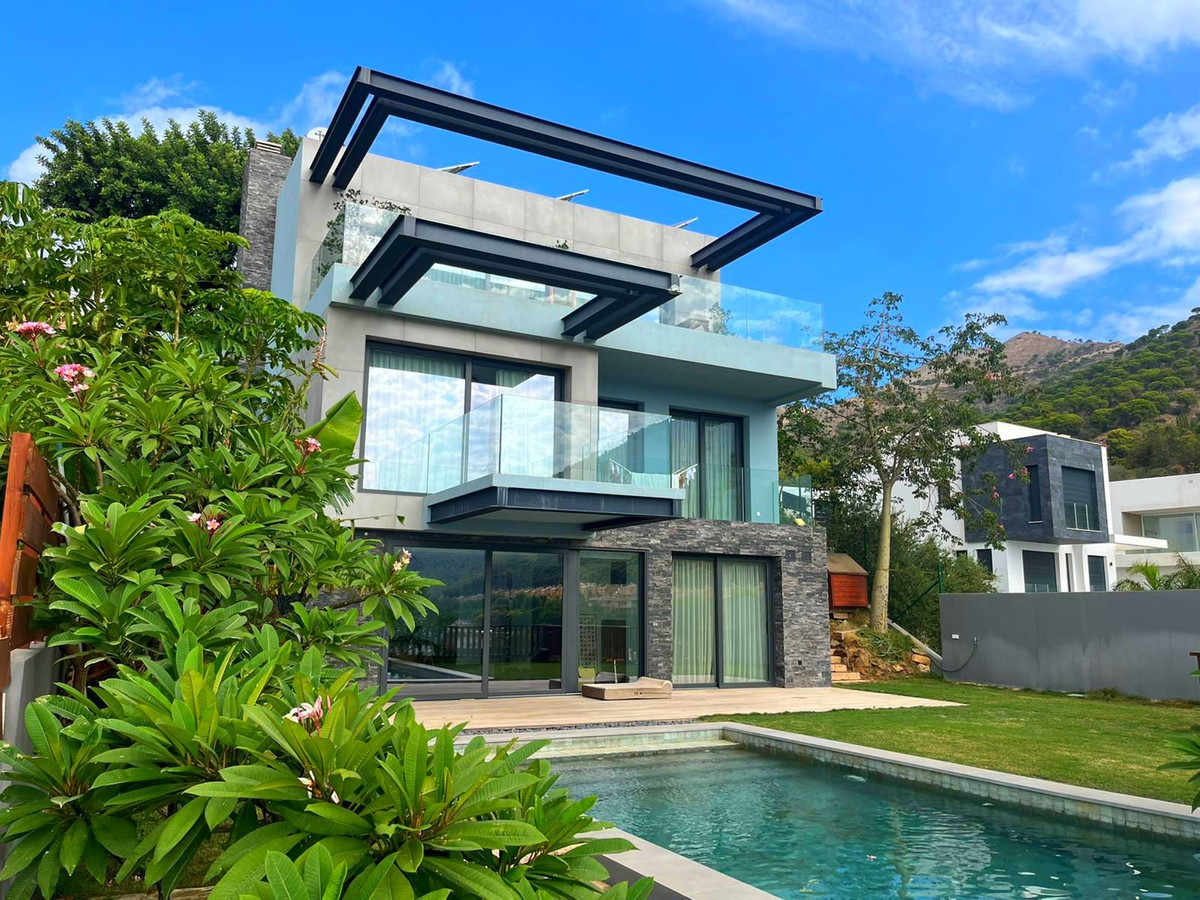 Espectacular villa de lujo con vistas panorámicas a Fuengirola, el mar y la montaña. Esta villa de 254m2 edificada en varios niveles en una parcela de 600m2 se distribuye en cómodos y amplios espacios con las mejores calidades. Consta de 5 dormitorios y 3 baños uno de ellos en suite, amplio vestidor. Las vistas son privilegiadas a la altura de la calidad de construcción. Esta moderna villa dispone de cargador electrónico wallbox para vehículos, placas fotovoltaicas con capacidad de generar 5kWh de potencia. Acabados en piedra natural y porcelánico. No dude en contactar para visitar esta privilegiada villa.