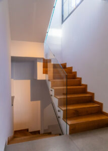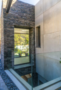 Esta villa cuenta con acabados superiores, incluyendo detalles en piedra natural, una escalera Porcelanosa y suelos cerámicos de alta gama. Las ventanas de doble acristalamiento con cámara de argón y cristal Guardian Sun garantizan un aislamiento y eficiencia energética óptimos.