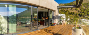Desde la amplia terraza se pueden admirar vistas espectaculares del mar, las montañas y el campo.