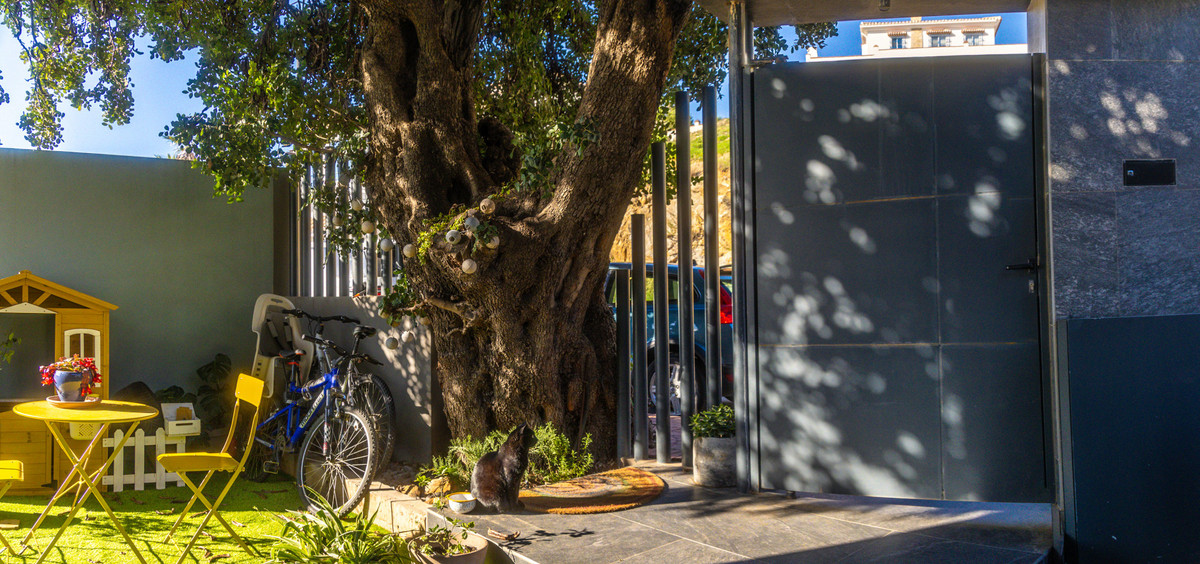 El exterior cuenta con un hermoso jardín con árboles frutales maduros, perfecto para relajarse o disfrutar de reuniones al aire libre. Entre las comodidades adicionales se encuentran una piscina privada, un amplio garaje con espacio para dos vehículos, una escalera exterior y un cuarto de almacenamiento.