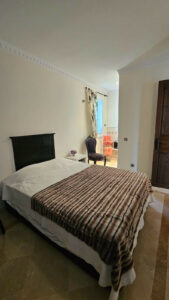 La planta superior es un santuario privado que alberga una elegante suite principal con vestidor, un lujoso cuarto de baño con ducha y bañera encastrada, y una hermosa terraza con impresionantes vistas al mar y a la montaña. Un segundo dormitorio con baño en suite completa este tranquilo refugio.