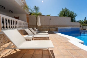 Varias zonas de terrazas, piscina privada, zona de chill out/bbq con pérgola y sauna.