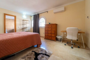 En la planta baja hay una habitación que actualmente se usa como trastero, pero en su diseño original estaba pensado para una sala de cine. A demás hay 1 dormitorio muy amplio con vestidor y baño en suite, con bañera y ducha. En este nivel también se encuentra un apartamento con entrada independiente de 1 dormitorio con baño y zona de salón y cocina.