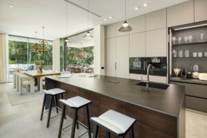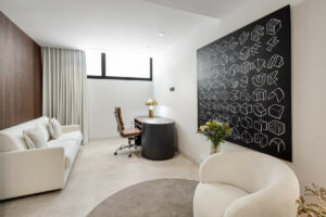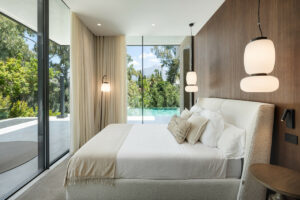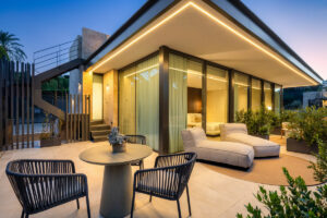 En la planta baja, encontrarás un amplio salón, una cocina de concepto abierto, un comedor y un dormitorio en suite. Este nivel se conecta fluidamente con las terrazas que cuentan con una cocina exterior, áreas de estar y comedor, y una zona de piscina. La primera planta alberga un dormitorio principal con vestidor y otro dormitorio en suite. La terraza en la azotea está diseñada para la relajación, con áreas de descanso, una hoguera, un jacuzzi y provisiones para una cocina exterior adicional.