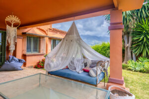 Esta villa de estilo andaluz se encuentra en una tranquila y verde zona de Nueva Andalucía, junto a Puerto Banús. Construida sobre una parcela de 1.204 m² con una superficie habitable total de 506 m², la propiedad ofrece 5 amplios dormitorios, 6 baños y 2 habitaciones independientes para el personal, lo que la hace ideal tanto para familias como para alojar a invitados o personal de servicio.