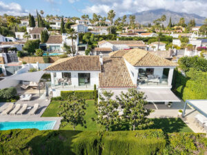 Bienvenido a esta magnífica villa familiar completamente reformada en el Valle del Golf. Al entrar en el salón, el comedor y la cocina abierta, encontrará abundante luz y espacio. Desde aquí, tendrá acceso directo a los jardines, el cenador, la piscina climatizada y las terrazas abiertas con grandes toldos para mayor comodidad. La casa está cuidadosamente diseñada, creando un espacio privado en la planta principal y, a continuación, cuenta con dos alas ideales para invitados. Hay 5 dormitorios y 4 baños, 3 de ellos en suite. En la planta del salón, encontrará una zona de lavandería y un aseo de invitados cerca. La casa fue completamente reformada hace 6 años con colores naturales para crear una atmósfera acogedora. La casa cuenta con calefacción por suelo radiante en toda la vivienda y sistemas de aire acondicionado Airzone, ambos alimentados por un sistema de aerotermia. Esta casa también es ideal para alquilar gracias a sus 5 dormitorios y su distribución.system. This house is also ideal as a rental property due to its 5 bedrooms and distribution.