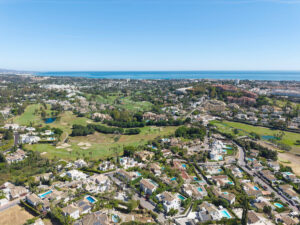 Desde su posición elevada, la vivienda ofrece impresionantes vistas al mar, aportando un ambiente sereno y lujoso a la vida cotidiana. El diseño arquitectónico enfatiza la conexión entre el interior y el exterior, con amplias terrazas que invitan a relajarse bajo el sol o a disfrutar de cenas al aire libre aprovechando el envidiable clima de Marbella.