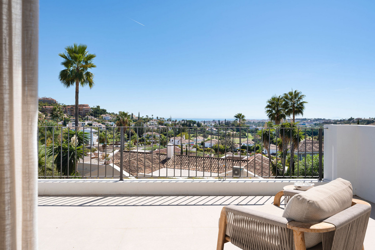 Desde su posición elevada, la vivienda ofrece impresionantes vistas al mar, aportando un ambiente sereno y lujoso a la vida cotidiana. El diseño arquitectónico enfatiza la conexión entre el interior y el exterior, con amplias terrazas que invitan a relajarse bajo el sol o a disfrutar de cenas al aire libre aprovechando el envidiable clima de Marbella.