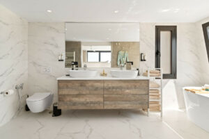 La villa cuenta con cinco amplios dormitorios y cinco elegantes baños, diseñados cuidadosamente para combinar lujo, privacidad y amplitud. Al llegar, una imponente entrada con acceso para tres a cinco vehículos da la bienvenida. A un lado, se encuentra un discreto trastero – ideal para guardar herramientas de jardín, bicicletas o material deportivo.