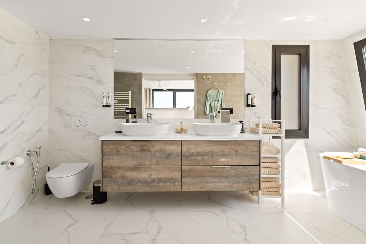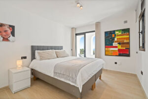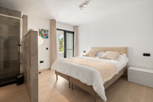 La planta superior está dedicada por completo a la suite principal – un sublime santuario privado donde el lujo y la tranquilidad se unen. Desde la cama se puede disfrutar de vistas despejadas a las montañas y al mar. La suite cuenta con un espacioso vestidor, una acogedora zona de estar y un elegante baño con vistas a La Concha, haciendo de cada mañana una experiencia mágica – un recordatorio diario del extraordinario estilo de vida que esta villa ofrece.
