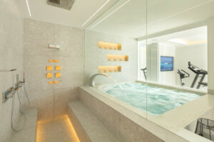 Entre sus prestaciones se incluyen una sala de cine, zona de spa con jacuzzi, sauna y baño turco, además de una sala de tratamientos. También cuenta con una pista privada de pádel, ideal para quienes disfrutan del deporte en casa.