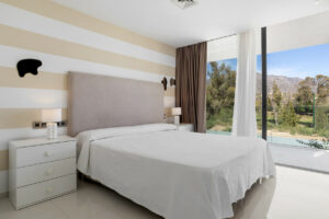 Diseñada tanto para el ocio como para el entretenimiento, la villa dispone de una moderna sala de juegos y una espectacular terraza en la azotea con jacuzzi, ideal para disfrutar del sol mientras se contemplan las impresionantes vistas al campo de golf. En el exterior, jardines cuidados enmarcan una reluciente piscina privada y tumbonas, mientras que una terraza cubierta con barbacoa crea el ambiente perfecto para inolvidables veladas al aire libre. El amplio estacionamiento privado garantiza una llegada sin complicaciones.
