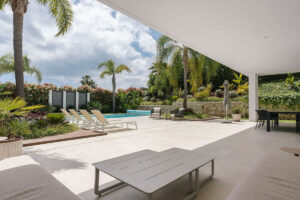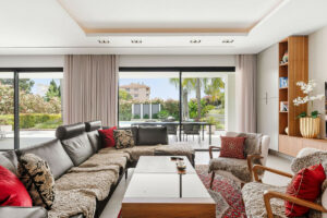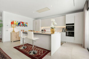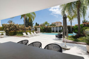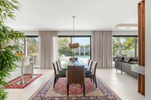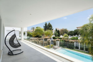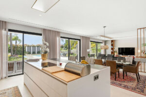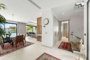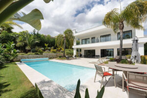 Bienvenidos a esta moderna y bien construida casa en la zona baja de Nueva Andalucía. Al entrar, encontrará una amplia cocina abierta que conecta con el comedor y la sala de estar. Desde aquí se accede a la gran terraza cubierta y a la zona de la piscina, con espacio suficiente para tomar el sol y una ducha exterior. En la planta principal hay una habitación con baño en suite, actualmente utilizada como despacho. En la primera planta hay tres habitaciones con baño en suite, todas con acceso a una terraza cubierta. Desde aquí, unas escaleras conducen al solárium, equipado con paneles solares y con espacio suficiente para crear una zona de ocio. En la planta baja encontrará la zona de lavandería, un segundo aseo, una habitación con baño en suite, una gran sala que podría utilizarse como sala de cine, etc., y un amplio garaje con capacidad para hasta cuatro coches. Se puede acceder a todas las plantas por las escaleras o por ascensor. La casa cuenta con tecnología moderna: calefacción por suelo radiante con sistema aerotérmico, aire acondicionado centralizado Airzone, sistema de filtración de agua y paneles solares, lo que la convierte en una vivienda muy eficiente. Su ubicación céntrica la hace ideal como residencia principal o como casa de vacaciones, además de ser una excelente opción para alquiler vacacional debido a su tamaño y ubicación privilegiada.