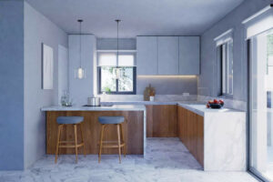 La villa también cuenta con un comedor y una terraza cubierta con zona de barbacoa, ideal para organizar cenas y reuniones. El salón es amplio y luminoso con una chimenea, creando un ambiente acogedor para la relajación y el entretenimiento. La espaciosa cocina está equipada con electrodomésticos modernos, y tiene una mesa de desayuno, haciendo que cocinar sea un placer. Aire acondicionado, armarios empotrados y suelos de mármol.