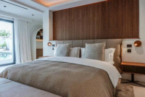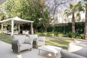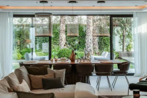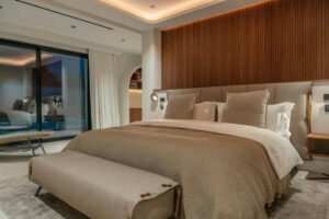 Esta villa independiente ofrece cinco dormitorios espaciosos cinco baños de diseño y un despacho privado la cocina está diseñada a medida con encimera de piedra natural y se abre a un salón amueblado con piezas italianas de alta gama todo pensado para ofrecer un estilo de vida exclusivo y cómodo