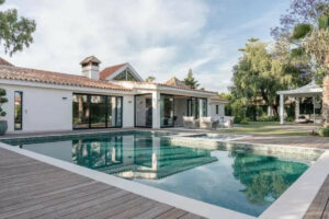 Villa moderna con total privacidad situada en una amplia parcela en la prestigiosa zona de Cortijo Blanco, al lado de Puerto Banús en Marbella a tan solo dos minutos caminando del mar esta propiedad ha sido completamente renovada con un diseño contemporáneo y funcional todo en una sola planta lo que la hace ideal para cualquier edad