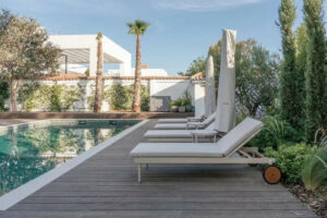 Entre sus características destacan la piscina climatizada el jacuzzi el sistema domótico para controlar desde el móvil la iluminación el aire acondicionado la ventilación y las cortinas además cuenta con terraza de bambú zona de barbacoa totalmente equipada ducha exterior aseo en la zona de piscina chimenea trastero y sistema de seguridad ventanas alemanas de aluminio con excelente aislamiento térmico y acústico así como una entrada de adoquines de piedra portuguesa de primera calidad y riego automático en todo el jardín