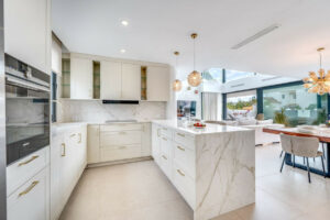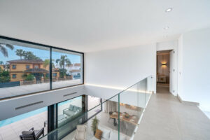 Acceda a interiores diáfanos y luminosos, con techos de doble altura y grandes ventanales correderos que difuminan los límites entre el interior sofisticado y la serenidad del exterior. El corazón de la vivienda es un impresionante salón conectado a una cocina gourmet con acabados en mármol y un comedor a medida que se abre a una terraza soleada.