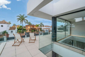 Bienvenidos a una joya arquitectónica de reciente construcción ubicada en la exclusiva urbanización Montecarlo de San Pedro de Alcántara. Esta elegante villa de 5 dormitorios, con una superficie construida de más de 786 m² distribuidos en tres niveles perfectamente diseñados, combina diseño vanguardista con la calidez del estilo mediterráneo — a tan solo unos pasos de la playa y del animado centro urbano.