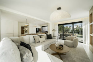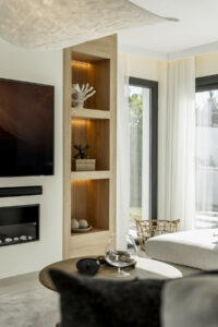 La villa se extiende a través de dos niveles, dando una buena separación entre las zonas de estar y dormir. El interior incluye cinco dormitorios, cada uno con su propio baño en suite, proporcionando privacidad y comodidad para los familiares e invitados. Las habitaciones son luminosas, cómodas y bien distribuidas, creando un diseño equilibrado y funcional en toda la casa.