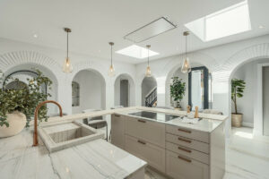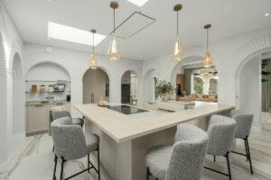 La cocina moderna y elegante está equipada con electrodomésticos de alta gama y una isla que sirve tanto como espacio adicional para cocinar como para un área de comedor informal. En la planta superior, la suite principal ofrece un refugio excepcional. Cuenta con un diseño impresionante y un lujoso baño en suite, que ofrece una combinación perfecta de confort y estilo.