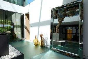 La perfecta integración de la vida interior y exterior define la propiedad. Los cuidados jardines de 1.100 m² incluyen dos piscinas privadas con vistas al mar y al jardín, ideales para relajarse o disfrutar del tiempo libre. La planta baja cuenta con un salón-comedor de planta abierta que se integra con las terrazas, junto con una cocina de diseño totalmente equipada.