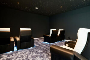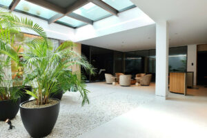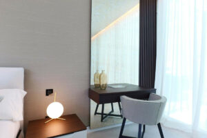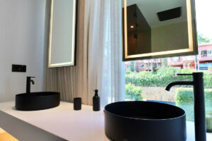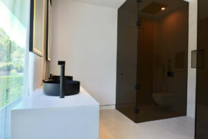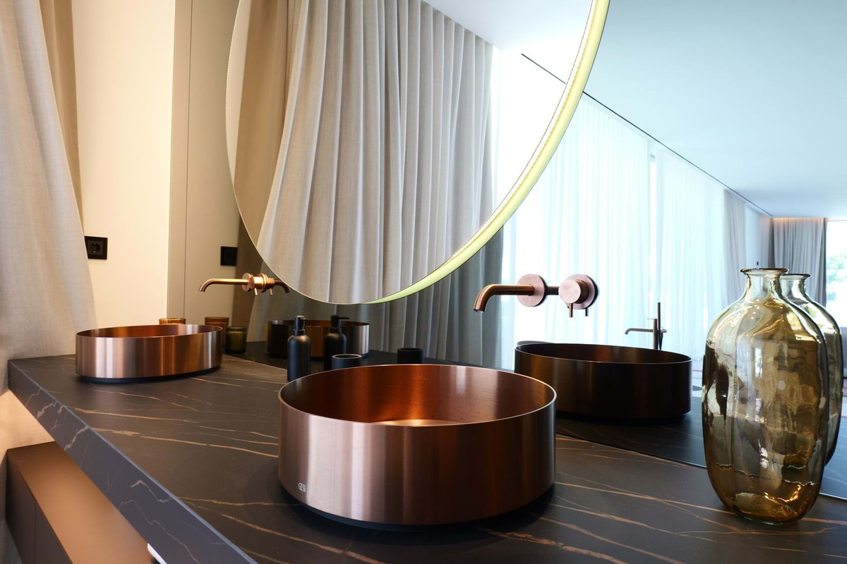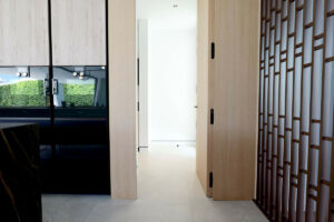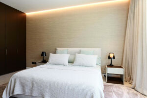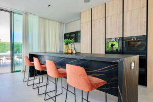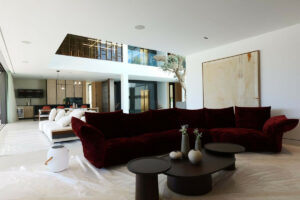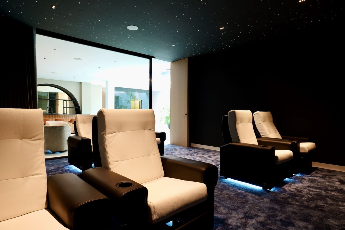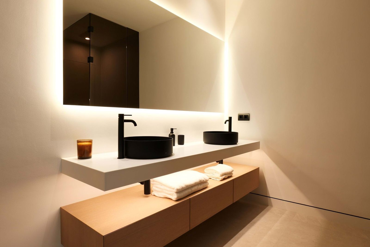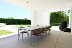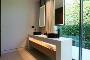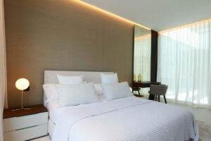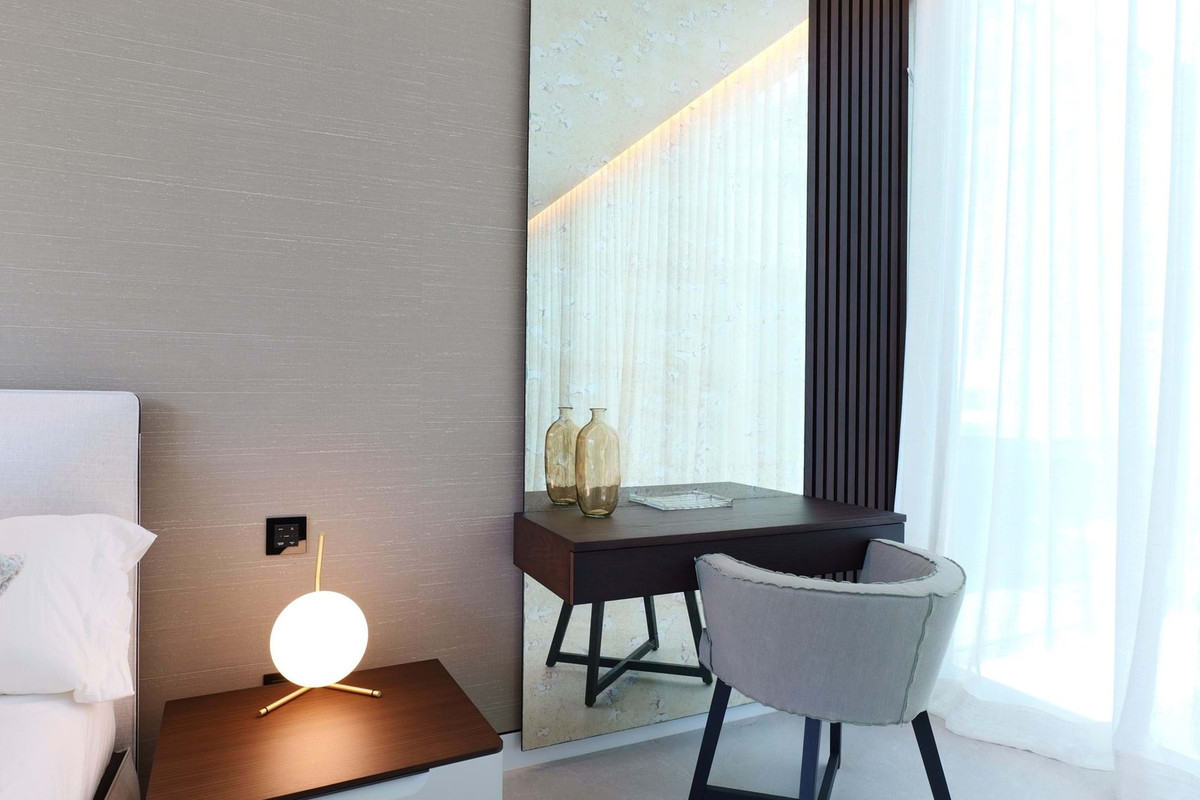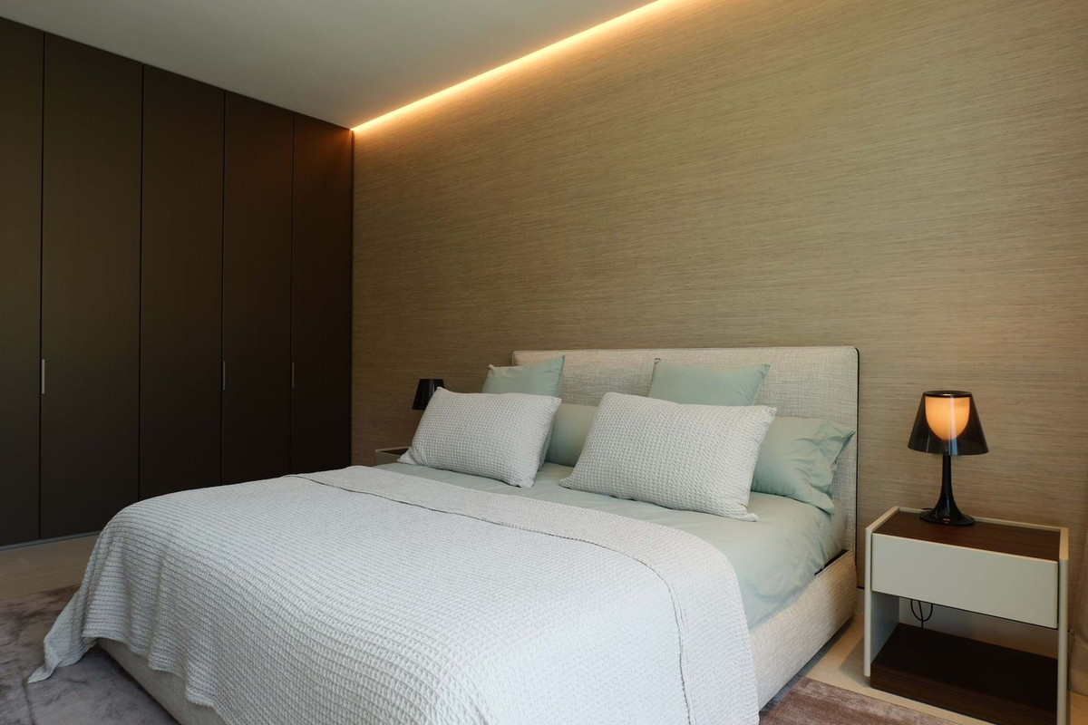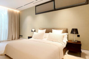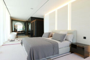La villa cuenta con cinco amplios dormitorios, cada uno con baño en suite y terraza privada. La suite principal se convierte en un auténtico santuario con vestidor y abundante luz natural.