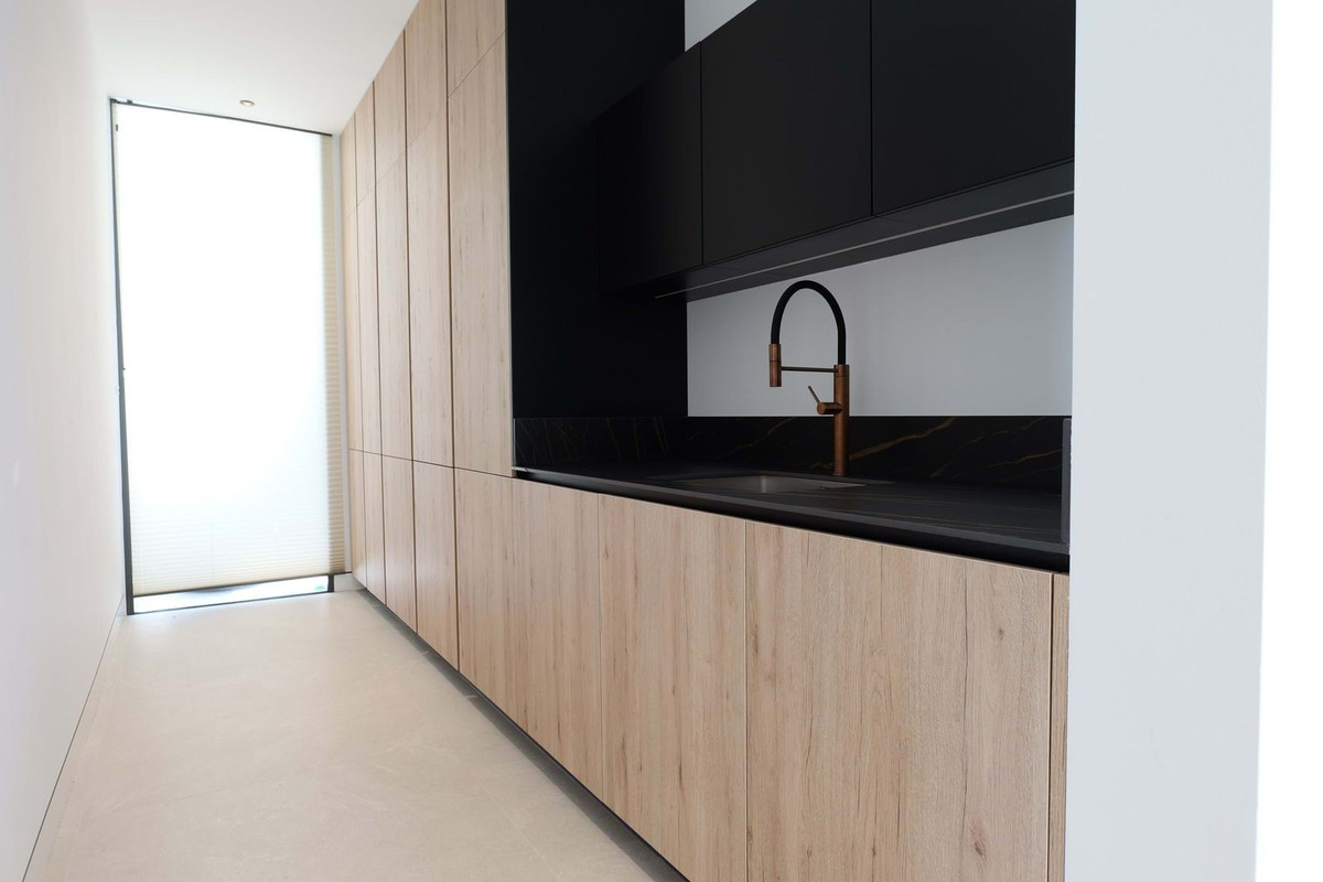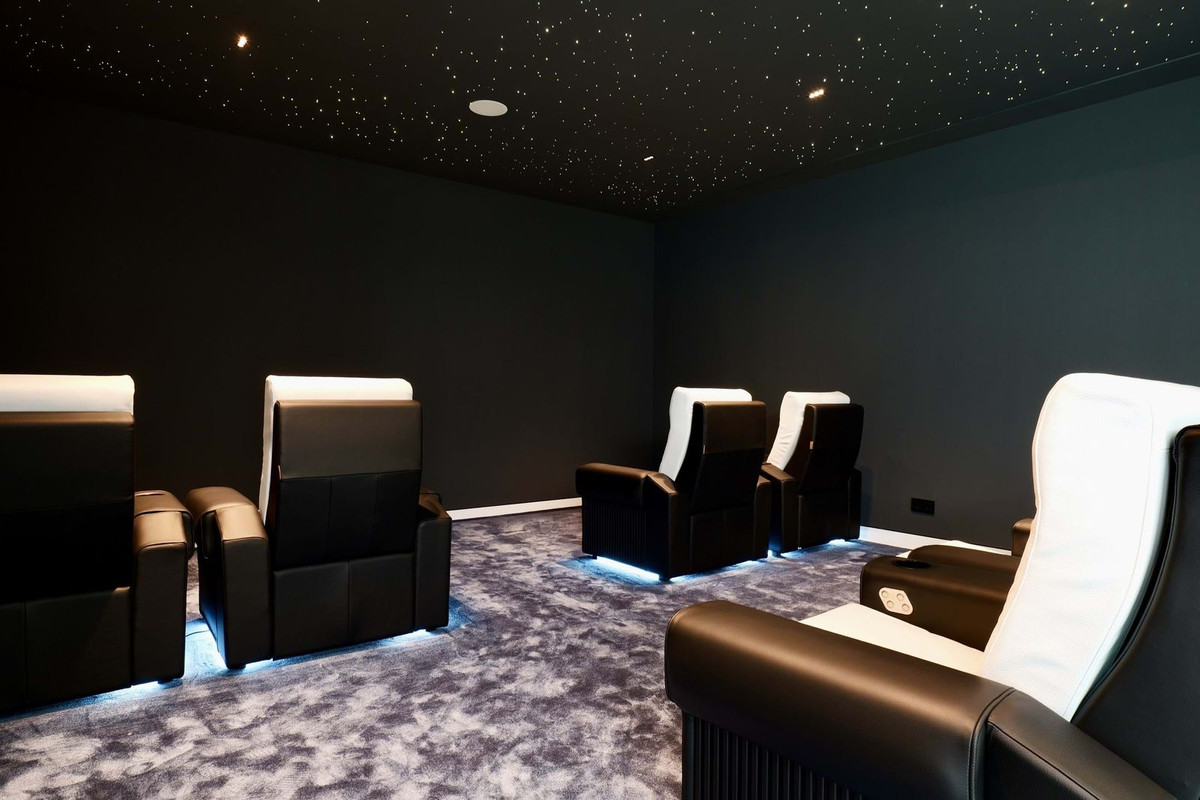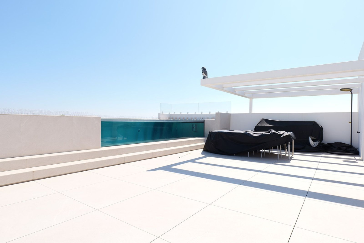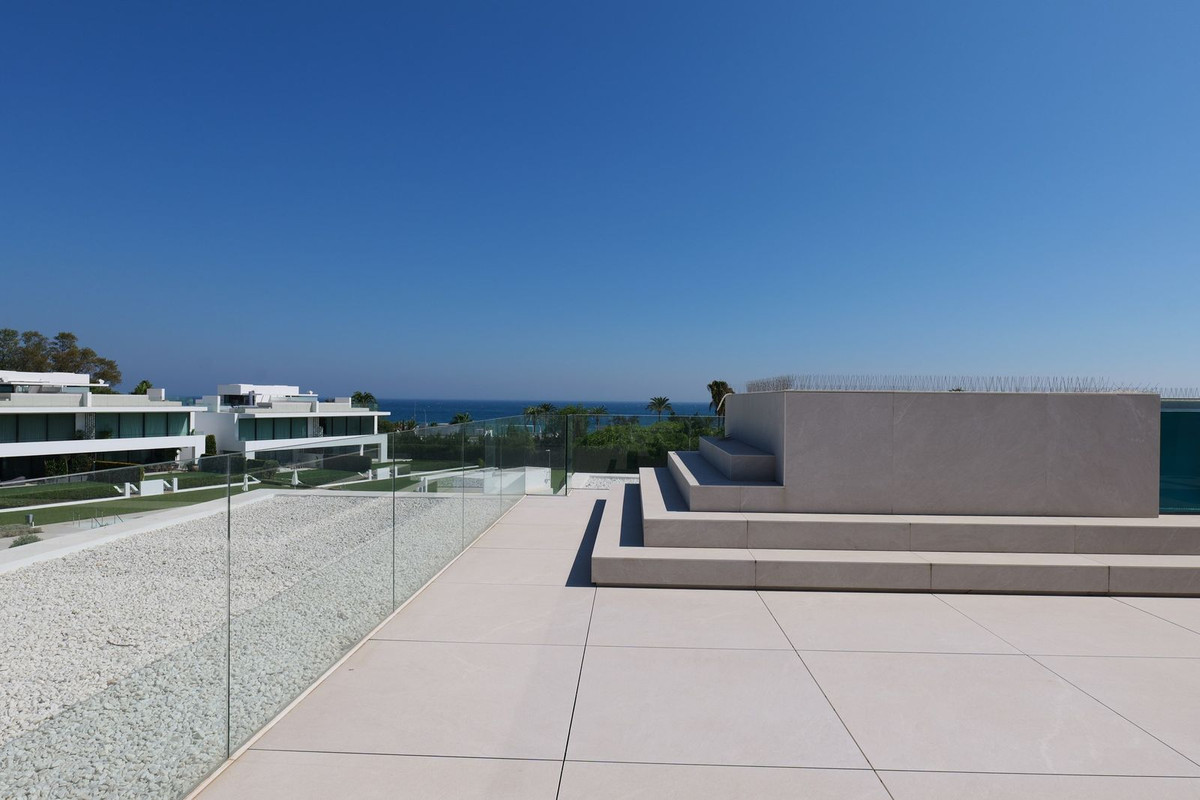 En la planta superior, tres dormitorios con terrazas privadas disfrutan de vistas panorámicas al mar y a la montaña. El sótano alberga una sala de cine, un bar, una sala multiusos, una suite de invitados, una zona de lavandería, un trastero y un garaje con capacidad para ocho coches. Destaca el solárium de 100 m² en la azotea con piscina, comedor y zonas de estar, que ofrece inmejorables vistas al Mediterráneo. Las comodidades modernas incluyen calefacción por suelo radiante, domótica, sonido Dolby Surround y seguridad avanzada.