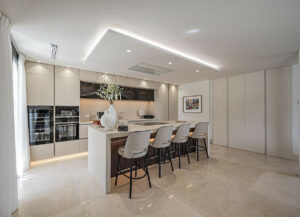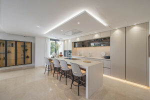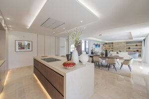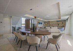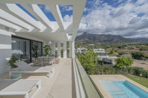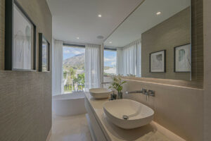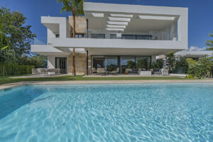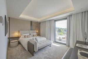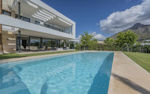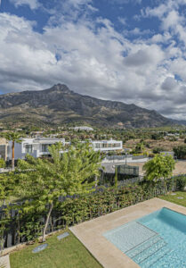 Elegante villa de estilo contemporáneo, distribuida en tres cuatro plantas con un total de cinco dormitorios, cinco cuartos de baño, gran salón con cocina abierta y zona de comedor, espectacular sótano con zona de cine, bar, billar, y gran solarium con preciosas vistas al mar y la montaña.
