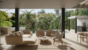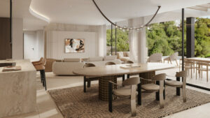Está diseñada para la vida junto al mar. Los amplios interiores se abren a terrazas panorámicas, jardines privados y piscinas, creando una continuidad,donde la arquitectura y la naturaleza conviven en equilibrio.