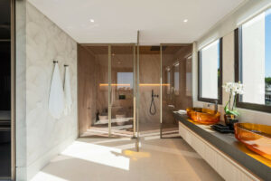 La planta superior está dedicada a la suite principal, que dispone de vestidor, baño de lujo y acceso a una terraza con vistas panorámicas. Una suite adicional y un tranquilo despacho completan este nivel, conectado por ascensor a todas las plantas. Esta residencia representa el máximo estándar de vida en Marbella, donde diseño, arquitectura y naturaleza se funden en perfecta armonía.