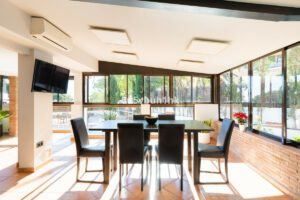 La vivienda principal ofrece 4 dormitorios (con opción de habilitar un quinto dormitorio en el actual lavadero) y un total de 4 baños, 3 de ellos en suite. El corazón de la casa es su amplio salón unido a una cocina totalmente reformada y equipada. Grandes ventanales rodean toda la zona de salón y cocina, aportando luz natural y vistas directas a las terrazas circundantes y a la espectacular piscina privada de 42 m², con cómodas escaleras de acceso.
