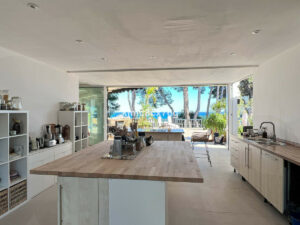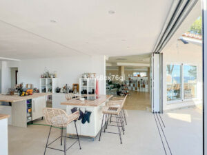 Desde cada rincón de la casa se disfruta de unas vistas despejadas al Mediterráneo y a toda la costa. La arquitectura, de inspiración mediterránea, ha sido completamente reformada para integrar los espacios interiores y exteriores, creando una conexión constante con el entorno.