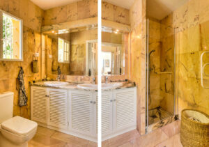 La villa se distribuye en dos plantas con 5 dormitorios y 4 baños, incluyendo un apartamento independiente que se puede alquilar o proporcionar privacidad cuando tiene amigos o familiares de visita. Todos con Air Condition.