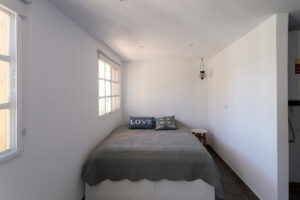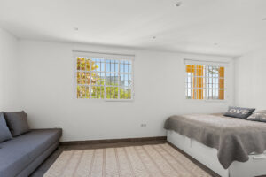 En el interior se encuentran las áreas sociales en la planta principal. la sala de estar y cocina tiene un plan de piso abierto. Aquí también encontrará un walk-in closet, un dormitorio y dos baños. En la planta baja se encuentra el dormitorio principal dos habitaciones con sus baños. Aquí también se encuentra el apartamento independiente, con su propia cocina y baño, tiene su propia entrada y terraza y podría ser una parte integrada del resto de la casa o visto como un apartamento independiente.