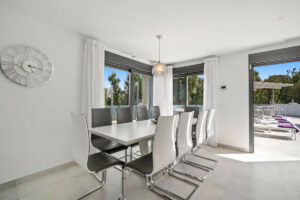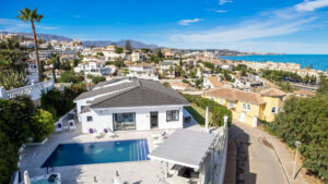 Amazing views from the beautifully presented 5 bedroom 6 bathroom villa finished to a very high standard, the light in this beautiful villa flows through from every side, large floor to ceiling windows in every room allows the sunlight to flood in, with easy access to the garden and pool from most rooms this really is the perfect holiday/home for anybody looking to be close to the beach, shops/restaurants, the town of La Cala de Mijas or Riviera del sol.