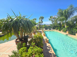 Los exteriores son sencillamente espectaculares. Una piscina de 13 x 6 metros, terrazas sombreadas para comer al aire libre, zona de barbacoa, fuentes, patios y un tranquilo estanque con peces conforman un verdadero oasis de vida al aire libre. Desde las terrazas, las puestas de sol tiñen el cielo de dorado y carmesí, regalando veladas inolvidables bajo las estrellas.