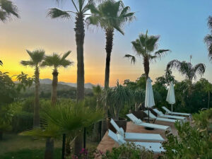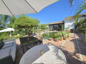 La propiedad está impregnada de alma andaluza, con jardines maduros, patios empedrados, fuentes y el suave murmullo del agua en los estanques que invitan a relajarse.