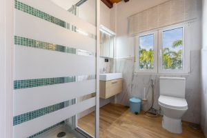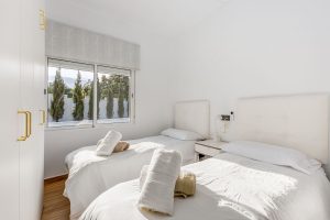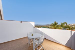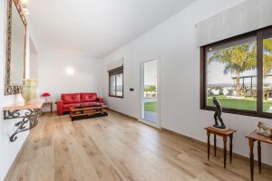Al entrar en la villa, se encuentra un amplio y bien diseñado espacio de concepto abierto que integra salón, cocina y comedor, y que da acceso a los dormitorios de la planta baja, además de una estancia que puede destinarse a oficina, estudio o sala de juegos. En esta planta también hay un cuarto de ducha independiente y un lavadero. Una escalera de diseño conduce a la planta superior, donde se ubican cuatro amplios dormitorios, cada uno con su propio baño en suite y terraza privada.