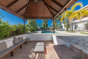 This cortijo-style villa was designed by a Dutch architect for his own family, combining traditional Spanish elements with a clean, modern layout. The main house includes four bedrooms, and there is also a self-contained guest apartment and a large garage. The outdoor areas are a major feature, with thoughtful landscaping creating an elegant and relaxed atmosphere.