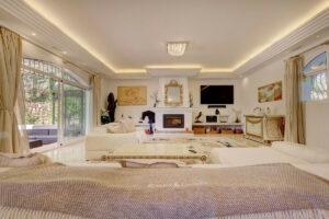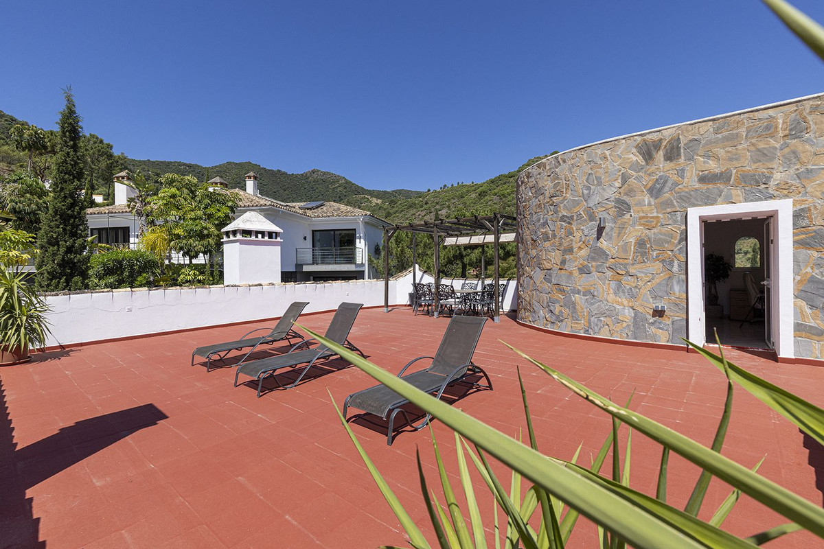 Por su ubicación, esta propiedad es perfecta para disfrutar de paz y tranquilidad, pero cerca de todo lo necesario. Al cruzar las puertas, quedará impresionado por el magnífico diseño de esta villa. A la izquierda, encontrará una casa de invitados independiente con dos apartamentos de un dormitorio, garaje y gimnasio. Al entrar en la villa principal, le recibirá una maravillosa escalera de caracol, techos altos y vistas a la piscina. El amplio salón cuenta con una estufa de leña, un comedor para 10 personas y una gran cocina con vistas a la montaña. Bajando un nivel, encontrará una gran sala de juegos con bar y acceso a una gran terraza. Un dormitorio con baño y al otro lado se encuentra la zona de lavandería, con amplio espacio de almacenamiento. En la primera planta, encontrará tres amplios dormitorios dobles, todos con baño en suite y con salida a la soleada terraza con fantásticas vistas a la montaña. El dormitorio principal cuenta con chimenea, vestidor y un baño enorme. La planta superior cuenta con una pequeña oficina con acceso a la enorme terraza solárium de más de 80 m². La zona de la piscina es perfecta para el entretenimiento y la enorme terraza cubierta cuenta con techos de 4 metros de altura. Hay acceso independiente a la casa de invitados, ubicada en un lateral de la propiedad, lo que permite total privacidad a la casa principal. La propiedad cuenta con licencia turística, lo que la convierte en una fantástica oportunidad para alquilar gracias a su increíble ubicación. ¡Imprescindible!
