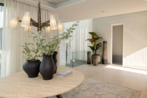 Existe también una terraza técnica que contiene placas solares, que garantizan la sostenibilidad eléctrica de la vivienda, en correspondencia con el aprovechamiento energético tanto de las carpinterías, como cristales, como de las distintas soluciones constructivas ecológicas. Un detalle que combina lujo con sostenibilidad.