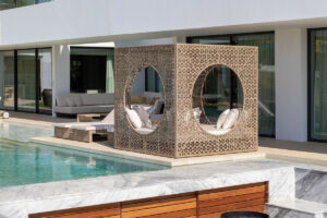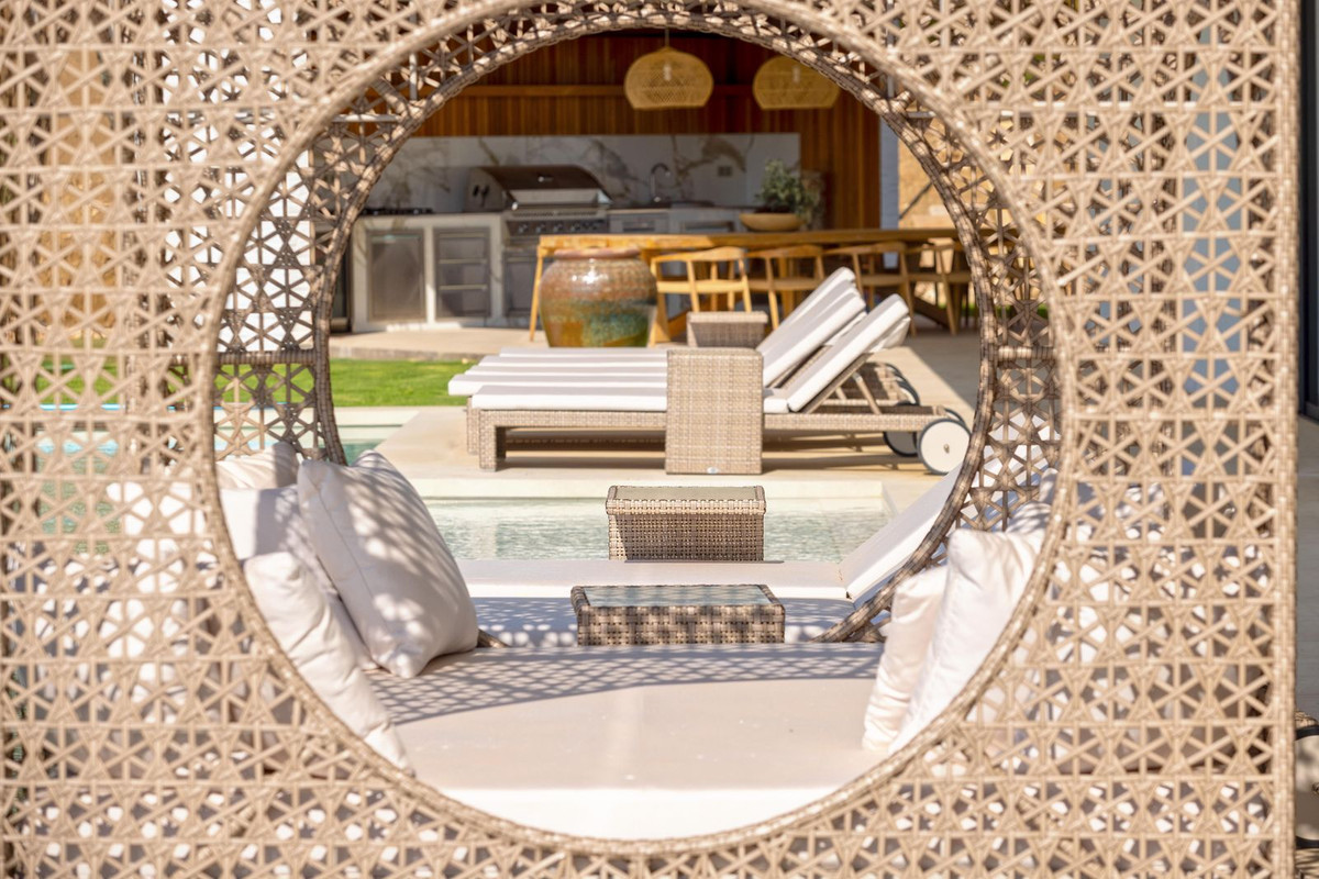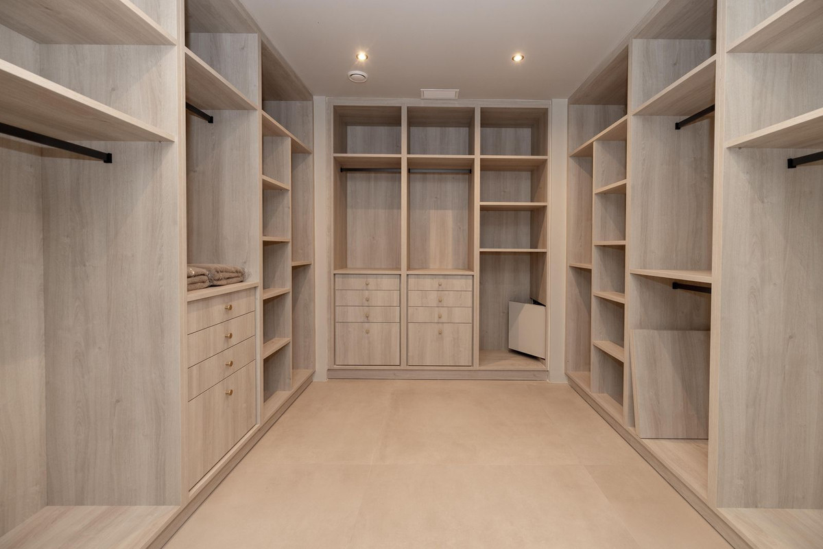 Los suelos exteriores son de mármol travertino italiano combinado con mármol de carrara. La puerta principal de madera es una puerta blindada para mayor seguridad. La villa, además, dispone de cuatro plazas de garaje, jardín, zona de gimnasio y una piscina privada, todo orientado al sureste para aprovechar al máximo la luz natural durante todo el día.