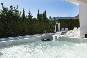 Ubicada en una parcela de 815 m² con un hermoso jardín, esta extraordinaria propiedad cuenta con 346 m² de espacio construido de exquisito diseño distribuidos en dos plantas en su interior, combinado con una zona exterior proyectada para una vida saludable durante todo el año con unas instalaciones de primer nivel: La fantástica piscina climatizada, jacuzzi, sauna, gimnasio, zona de BBQ.. .